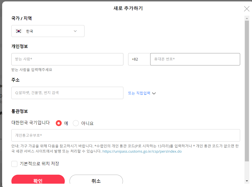 "개인통관고유부호발급"은 간단한 본인인증 후 이용 가능 합니다.