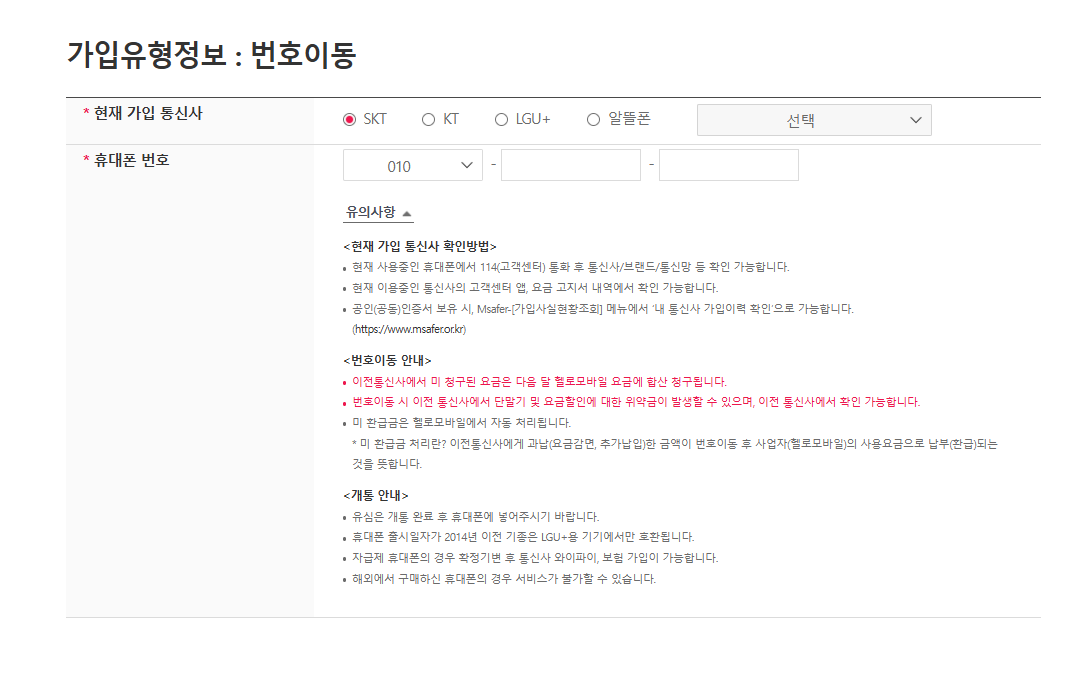 번호 이동 사전 동의를 합니다.