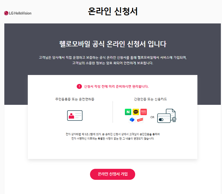 1. 헬로모바일 신청하기