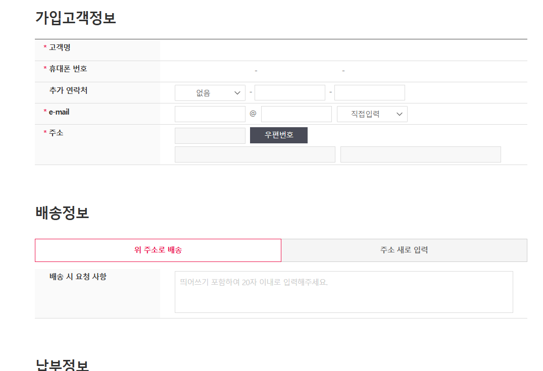 스크롤해서 아래로 내려가서 입력합니다.
